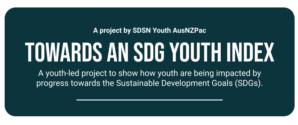 The project draws inspiration from previous attempts to measure progress towards the SDGs, such as the Sustainable Development Report and Transforming Australia. However, these reports have only briefly touch upon youth-related issues, with only one indicator specifically targeting young people in each. Given the need to address the concerns of young people in sustainable development efforts, this project seeks to build upon existing frameworks to evaluate the extent to which young people are being left behind.
