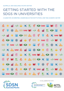 Getting started with the SDGs in universities is a guide to help universities, higher education institutions, and the academic sector in Australia, New Zealand and the Pacific to accelerate their contributions to the Sustainable Development Goals (SDGs). The Guide highlights the important role universities have in implementing the SDGs through their teaching, research, operations and leadership, and provides practical guidance and examples to inspire further action. Published in 2017, the Guide is an initiative of SDSN Australia/Pacific in collaboration with the Australasian Campuses Towards Sustainability (ACTS), the global SDSN, and Australian and New Zealand universities.